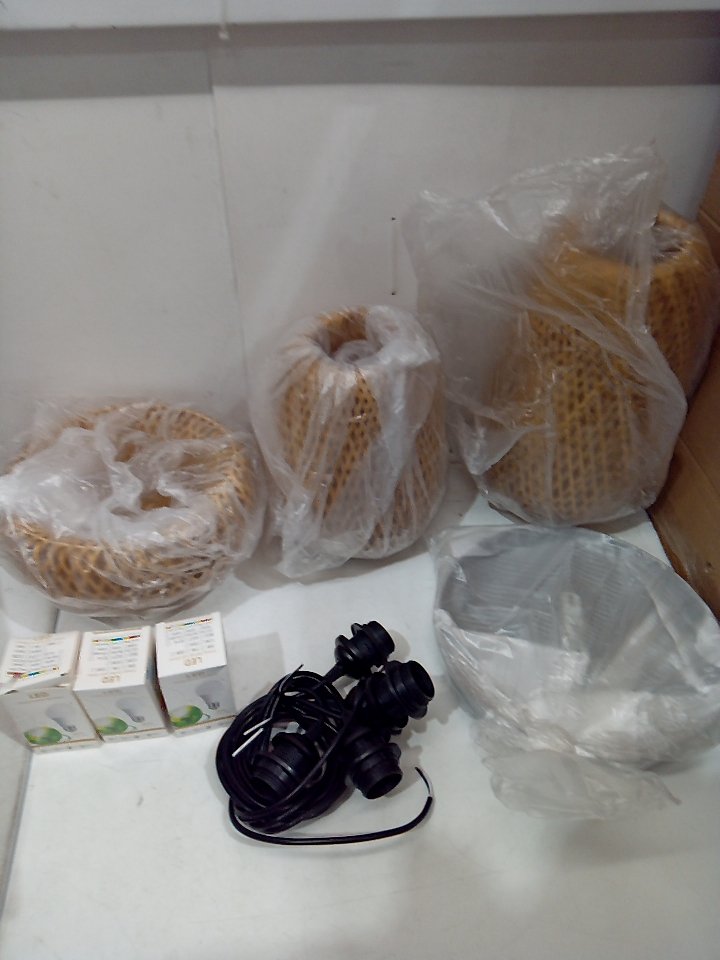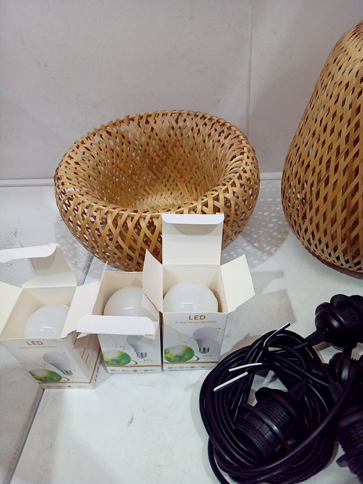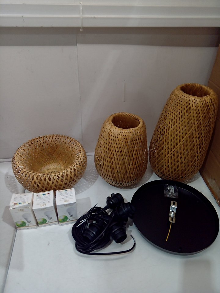 GCQ Retro Rustic Bamboo Wicker Rattan hanging Chandelier/Light Fixtures - 3 lights - Brown