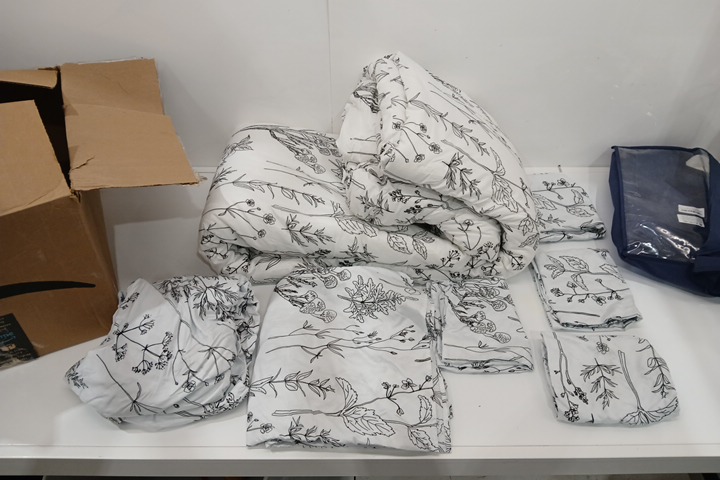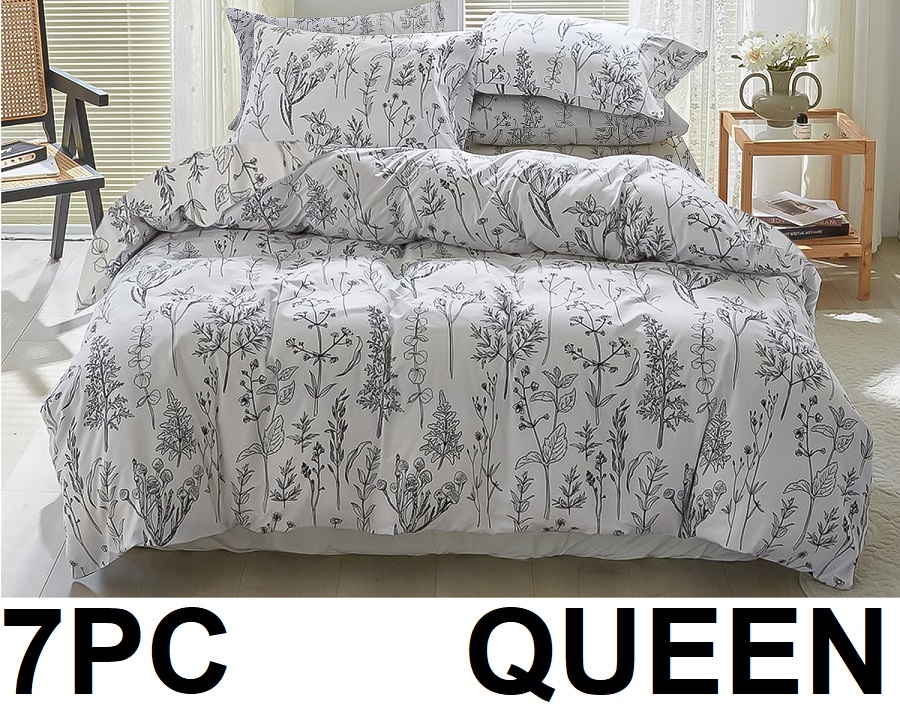 Metersgod Botanical Flowers Printed Comforter set - queen - white/black (model: MMQJT-QE)