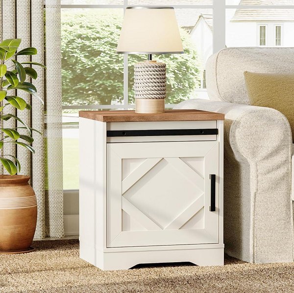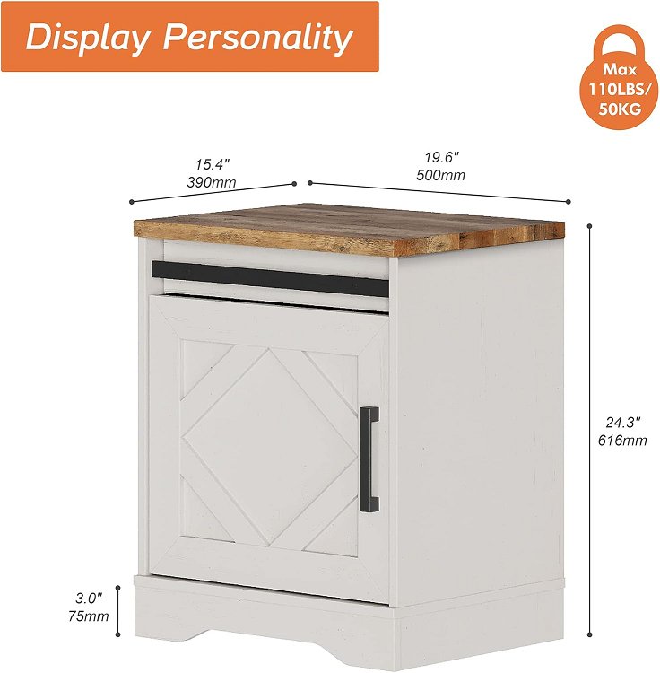WAMPAT Nightstand Side END Table with Drawer and Cabinet - 110LB MAX LOAD - 24" x 19" x 15" - rustic white (model: W06E3056W)