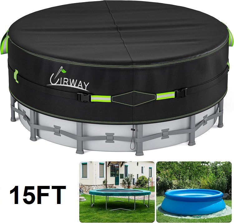 uirway round cover for above ground pools and trampolines - 15ft - black