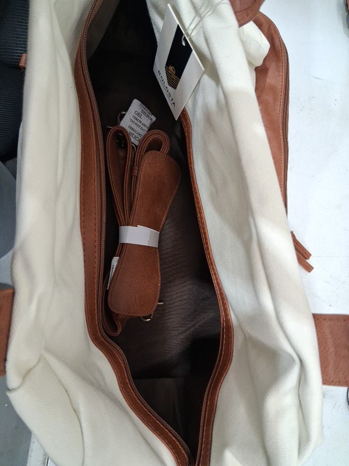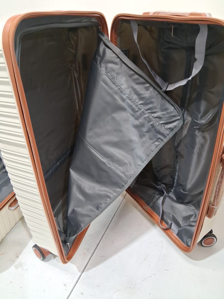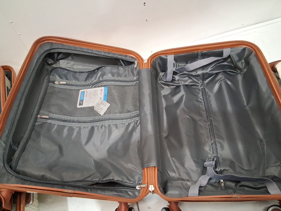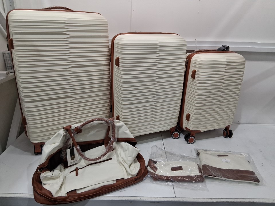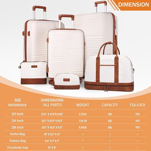 6pc bolosta lightweight TSA ABS HARDSIDE luggage set with duffle bag, toiletry bag and crossbody bag - 20" / 24" / 28" - beige / brown