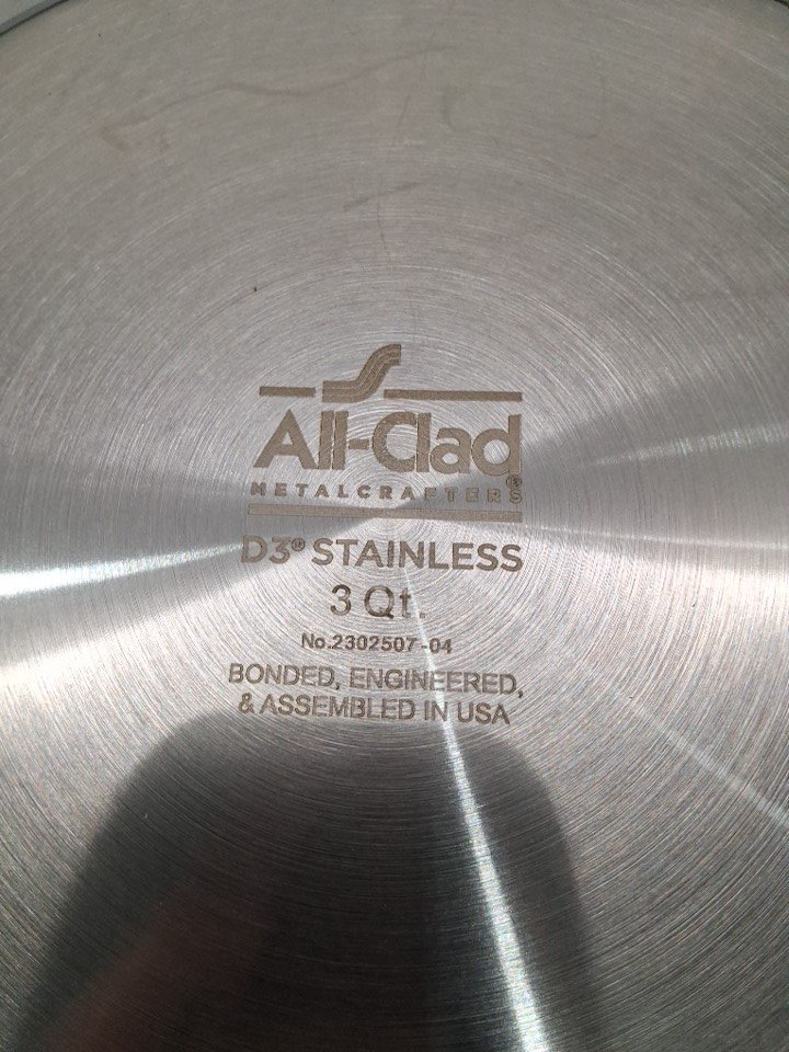 ALL-CLAD D3 3QT STAINLESS STEEL TRI-PLY BONDED SAUTE PAN WITH LID (MODEL: 4403)