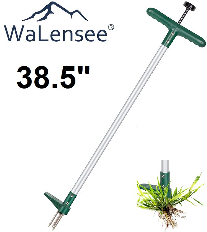 WALENSEE 3-spike claw WEED PULLER stand up wedding hand tool - 38.5" - green / silver