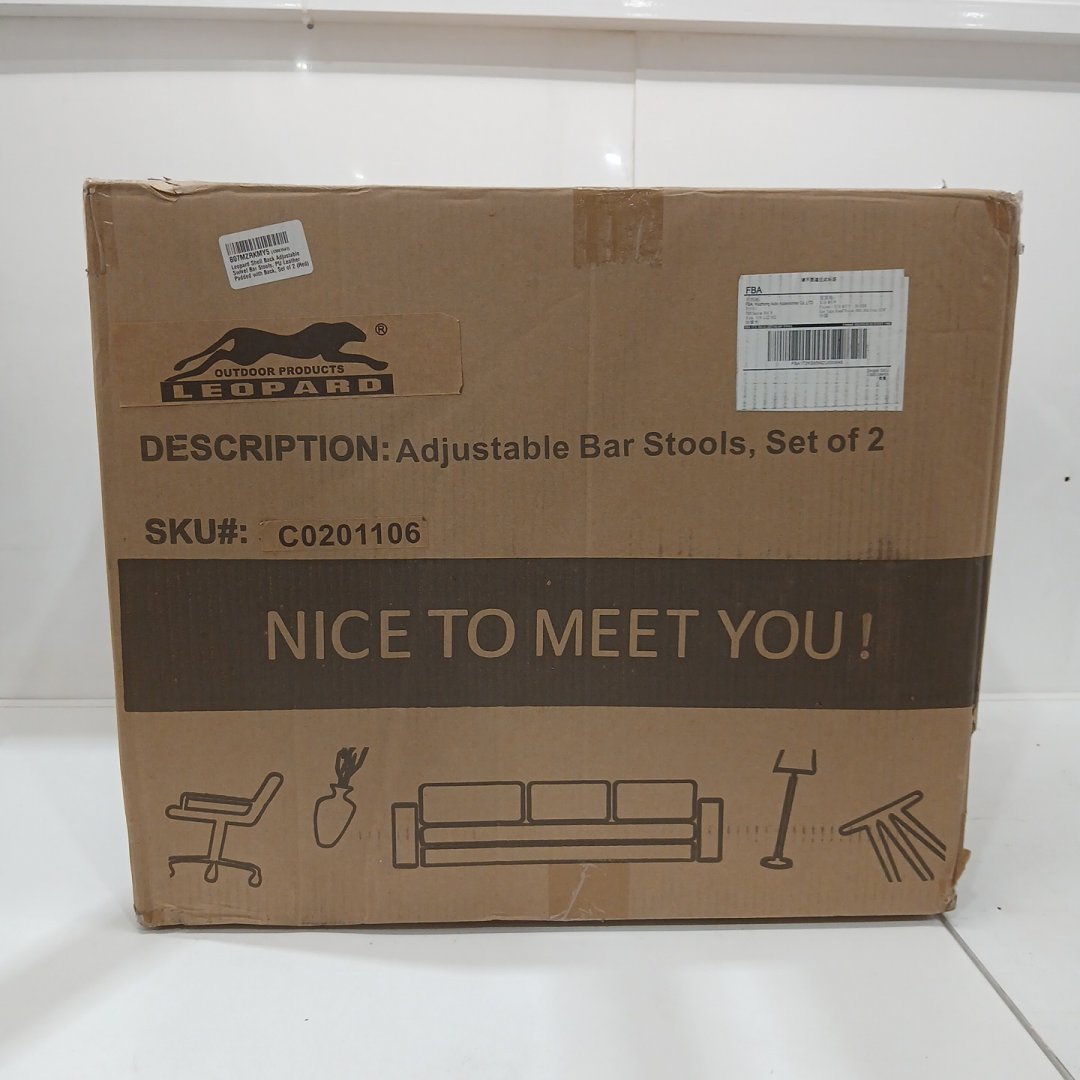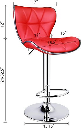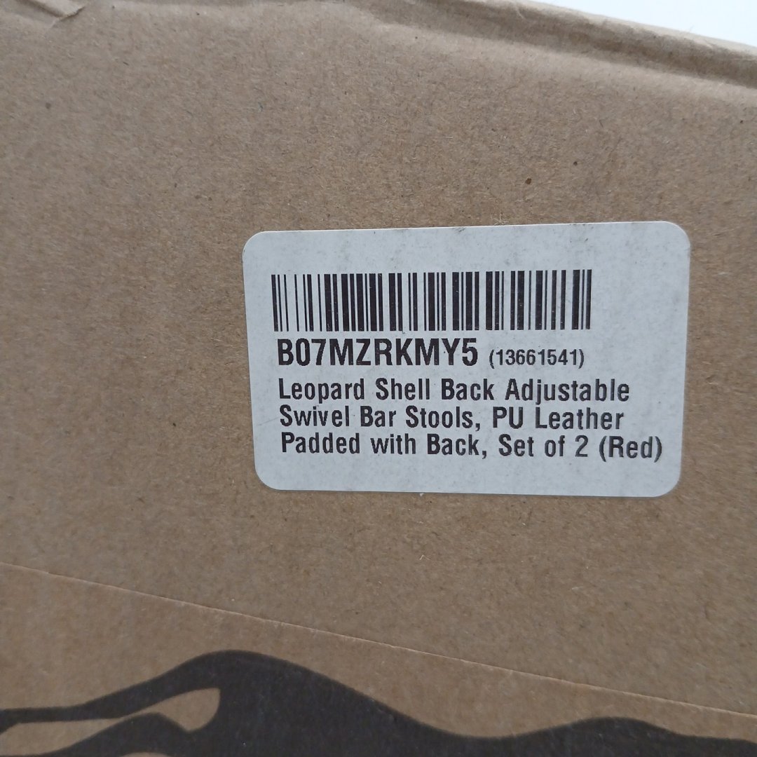 2PK LEOPARD SHELL BACK ADJUSTABLE SWIVEL BAR STOOLS, PU LEATHER PADDED - RED