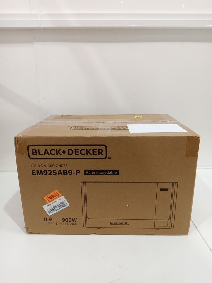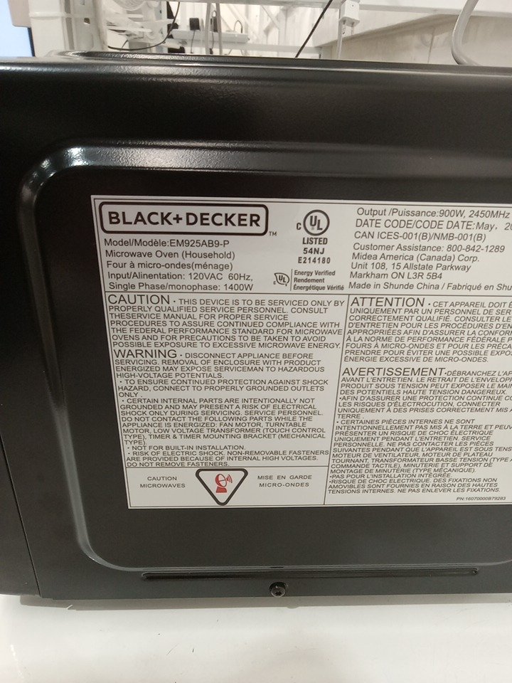 BLACK+DECKER Digital Microwave Oven with Turntable and Push-Button Door - 0.9Cu.Ft - Black (MODEL: EM925AB9-P)