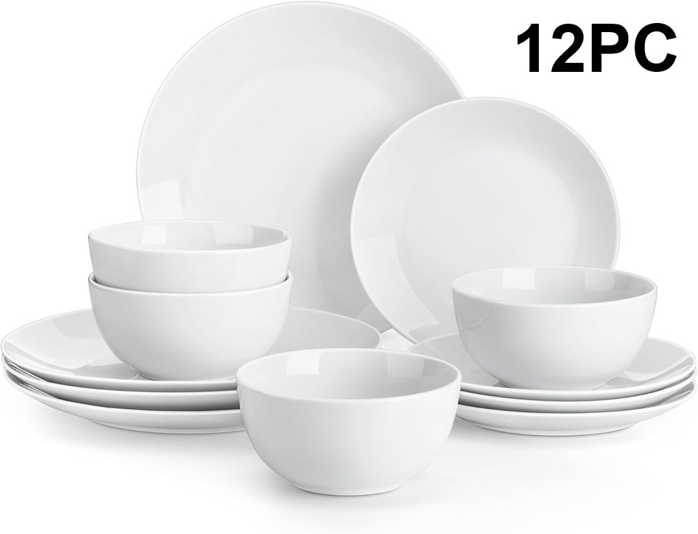 12PC MALACASA Amelia Gourmet Porcelain DINNER SET - SERVES 4 - - WHITE