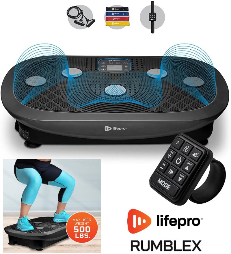 LIFE PRO RUMBLEX 4D VIBRATION EXERCISE PLATE W/ ACCESSORIES - BLACK (MODEL: LP-RMXPLS-BLK)
