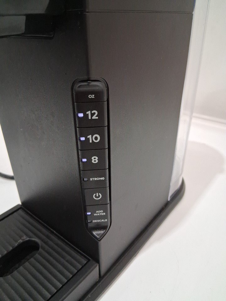**Tested for power.** Item has minor residue markings around the drip tray and in the reservoir, minor coffee debris around the pod holder, light cosmetic wear along the exterior from previous gentle use, see photos.