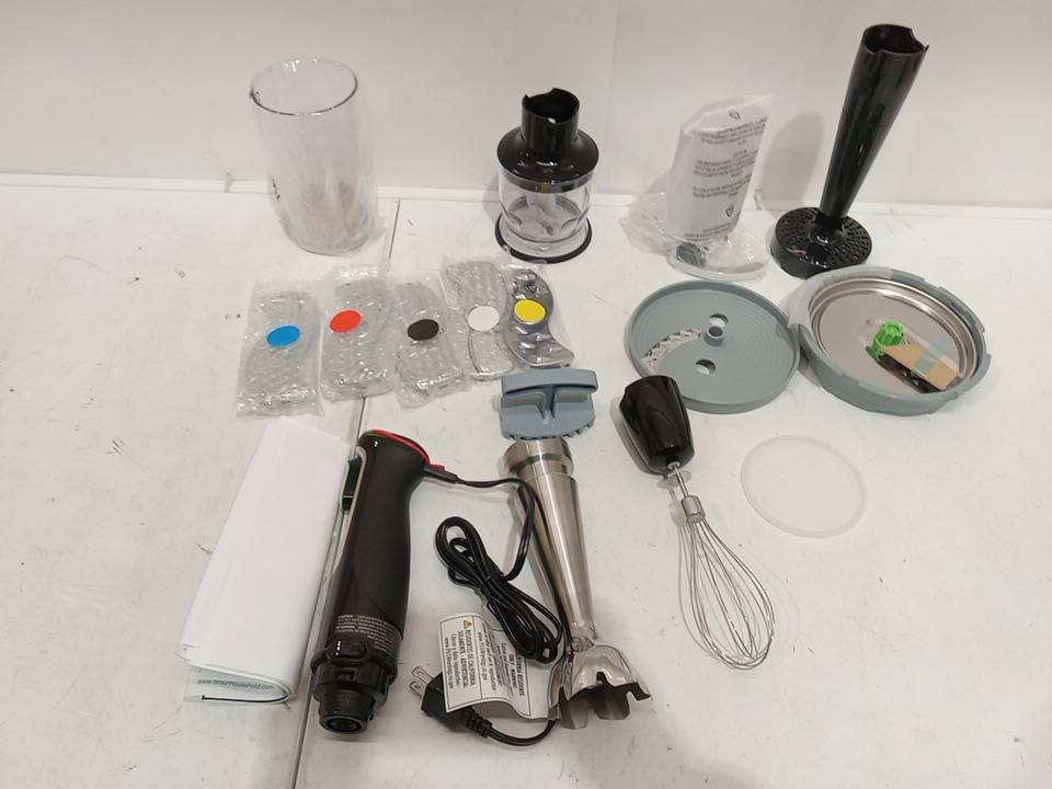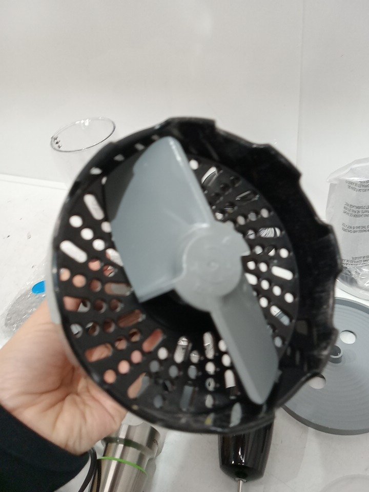 Has some stains. Missing the 8 cup all in one food processor, kneading hook and french fry disc. Tested for power