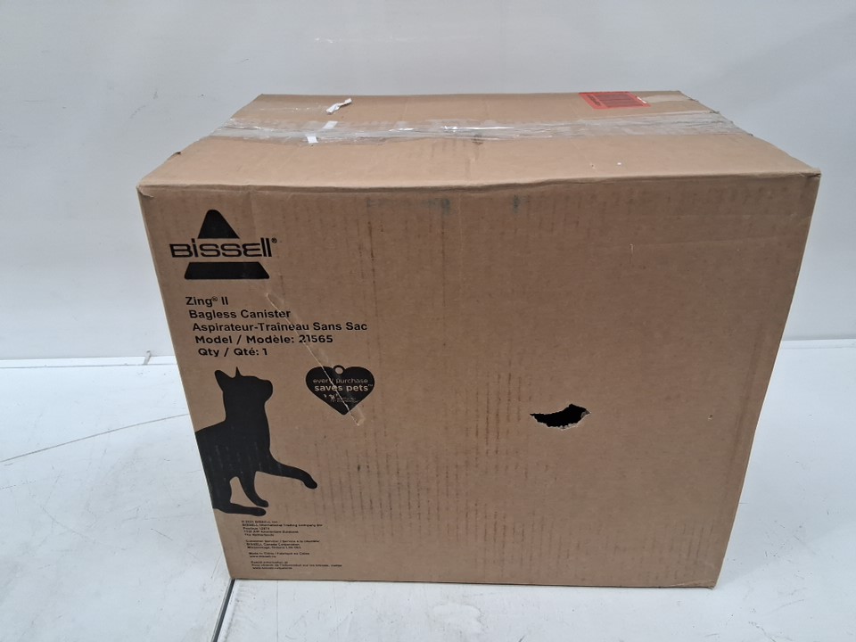 BISSELL ZING II BAGLESS CANISTER VACUUM CLEANER WITH CREVICE TOOL - RED/BLACK (MODEL: 21565)
