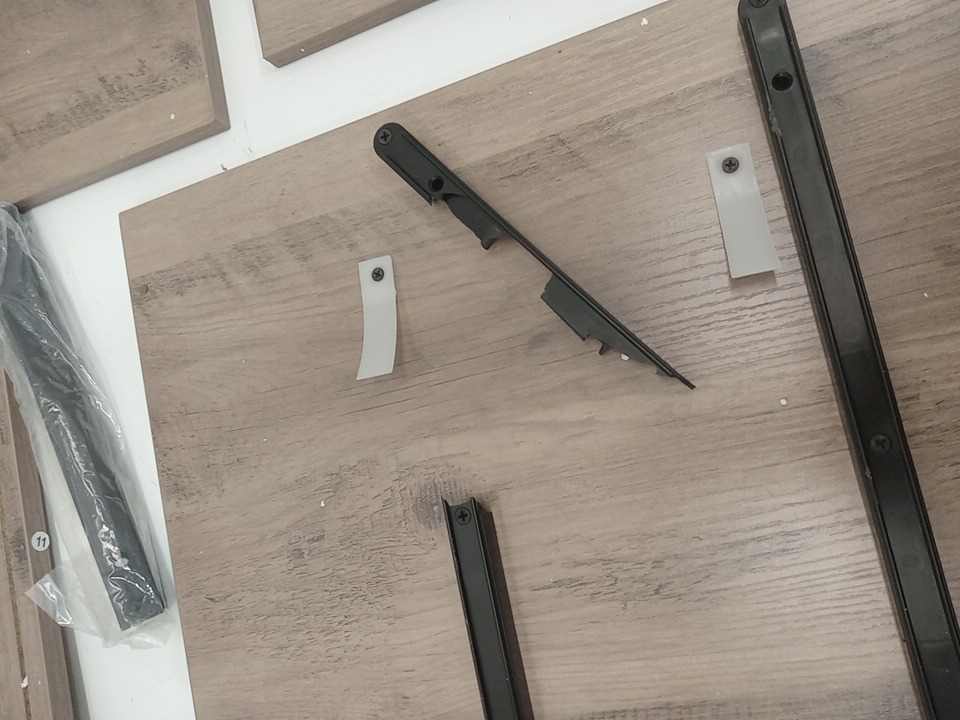 one of the sliders for the drawers is broken, and will probably need replacing. please see photos