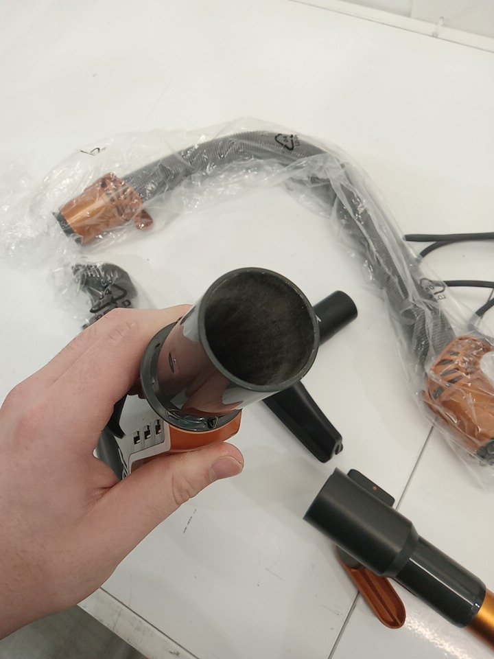 the vacuum is a bit dirty, but it still turns on and works fine. please see photos