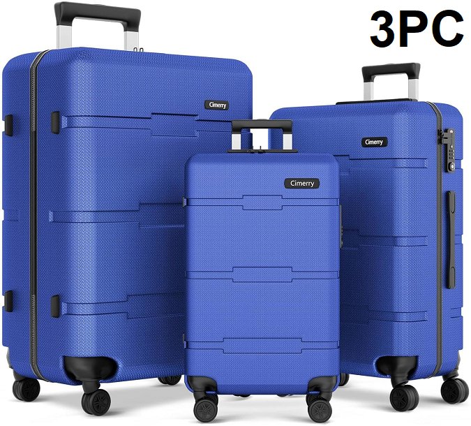 3pc Cimerry Suitcase & Carry On Luggage Set - Lightweight PC+ABS Hardshell with double spinner wheels - 20"/24"/28" - coral blue (model: fyc001)