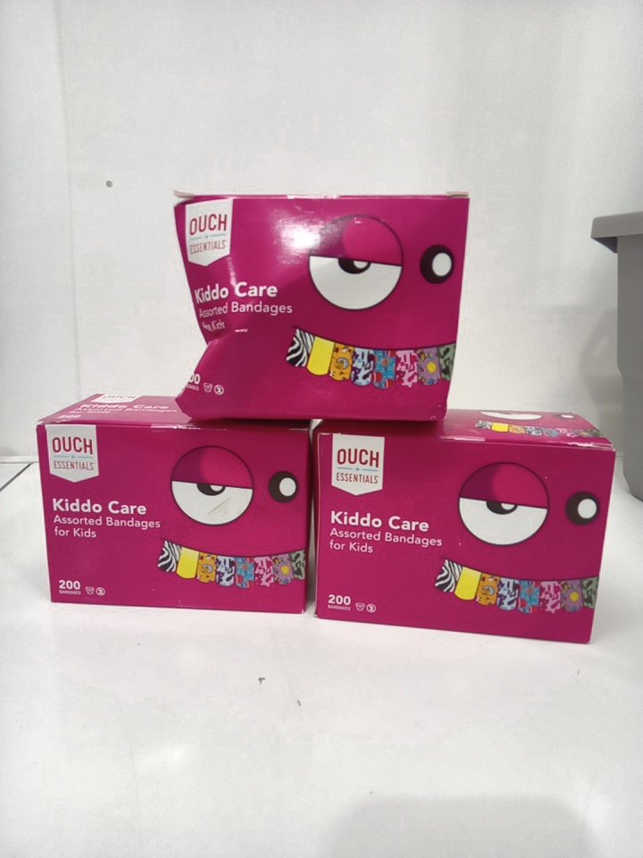 3 (200PK) OUCH ESSENTIALS kiddo care assorted bandages- assorted colours & patterns