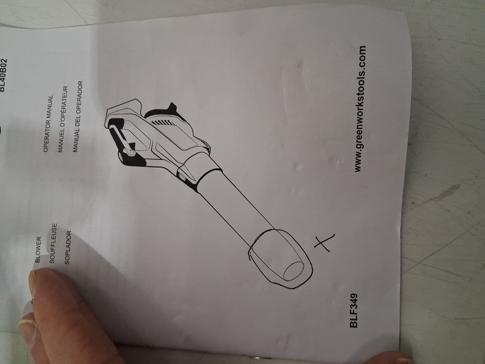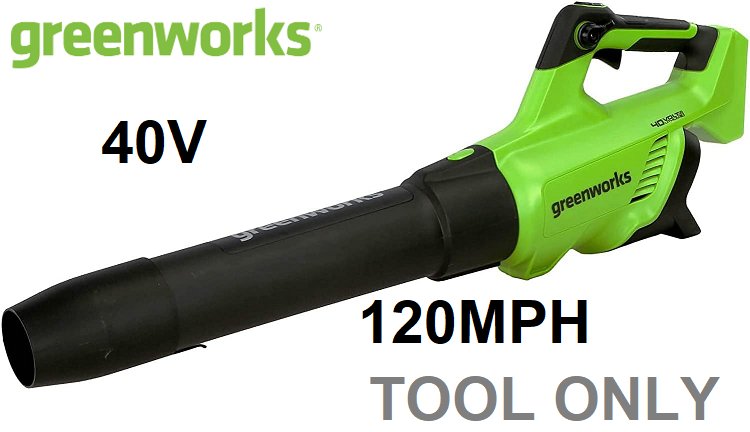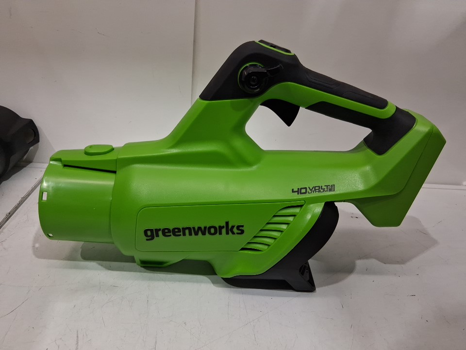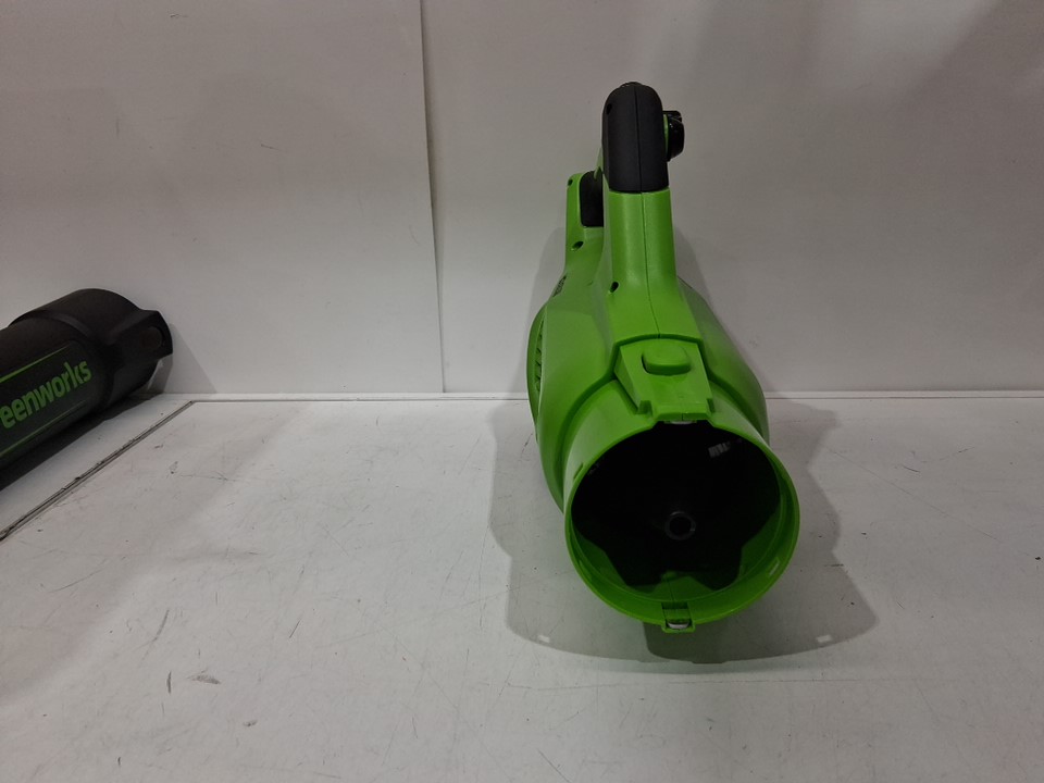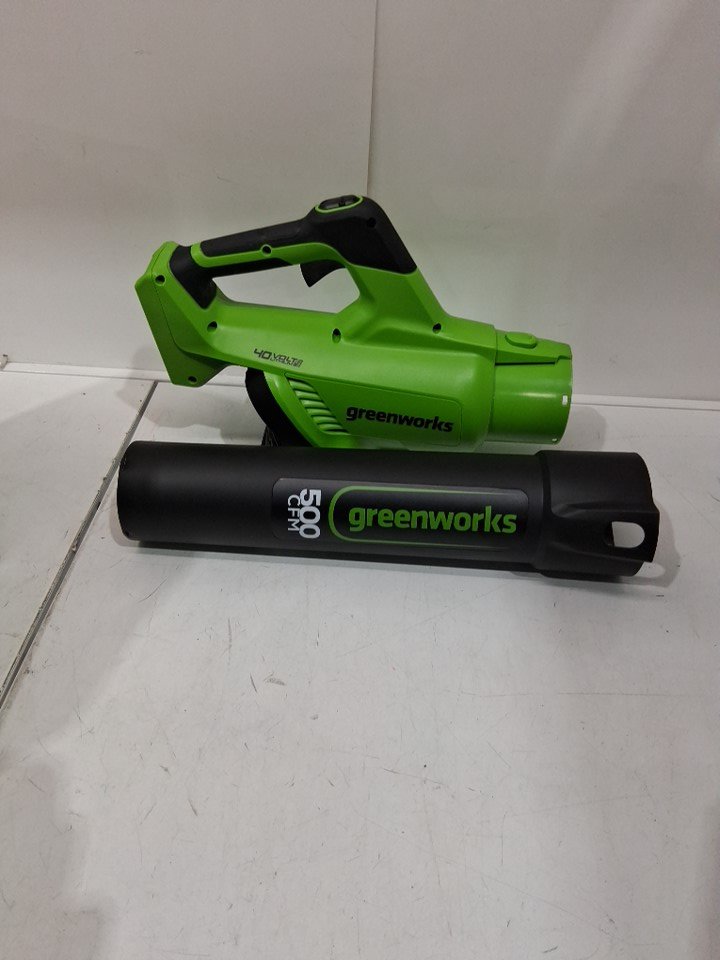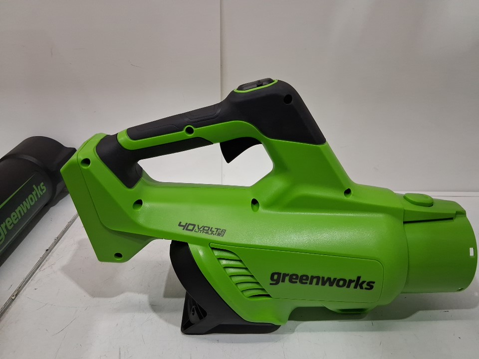 Greenworks Cordless Axial Leaf Blower - 40V /120 MPH / 500 CFM - green / black - (model:blf349) **tool only**