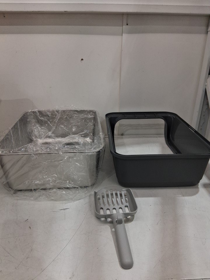 Powools small Stainless Steel Cat Litter Box with Scoop-17.5" x 10.9" -grey (model: pwcmsp808-gy)
