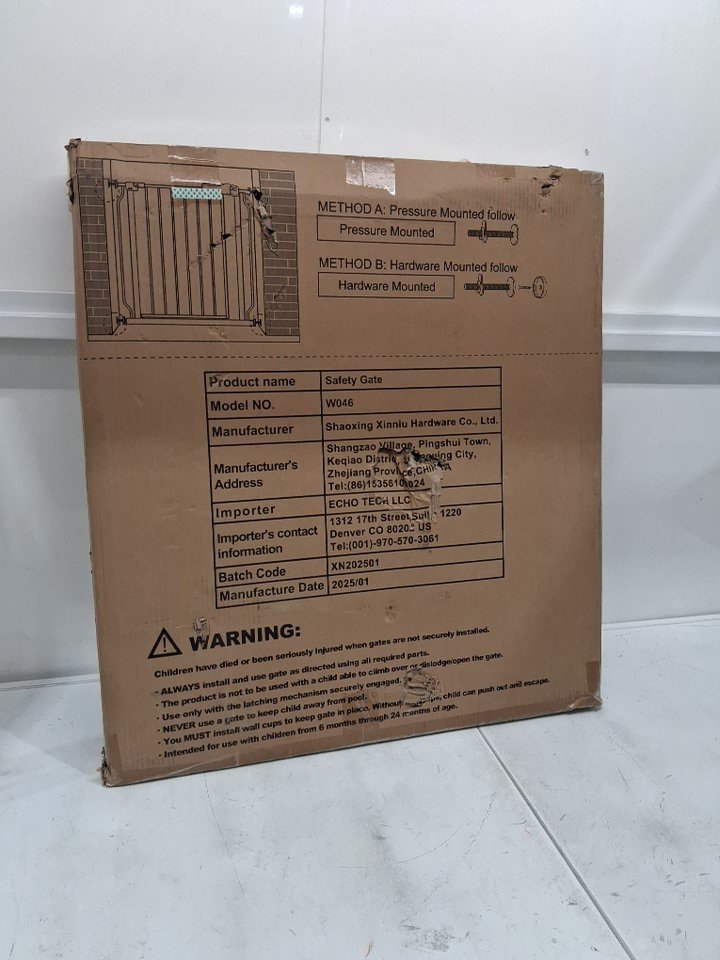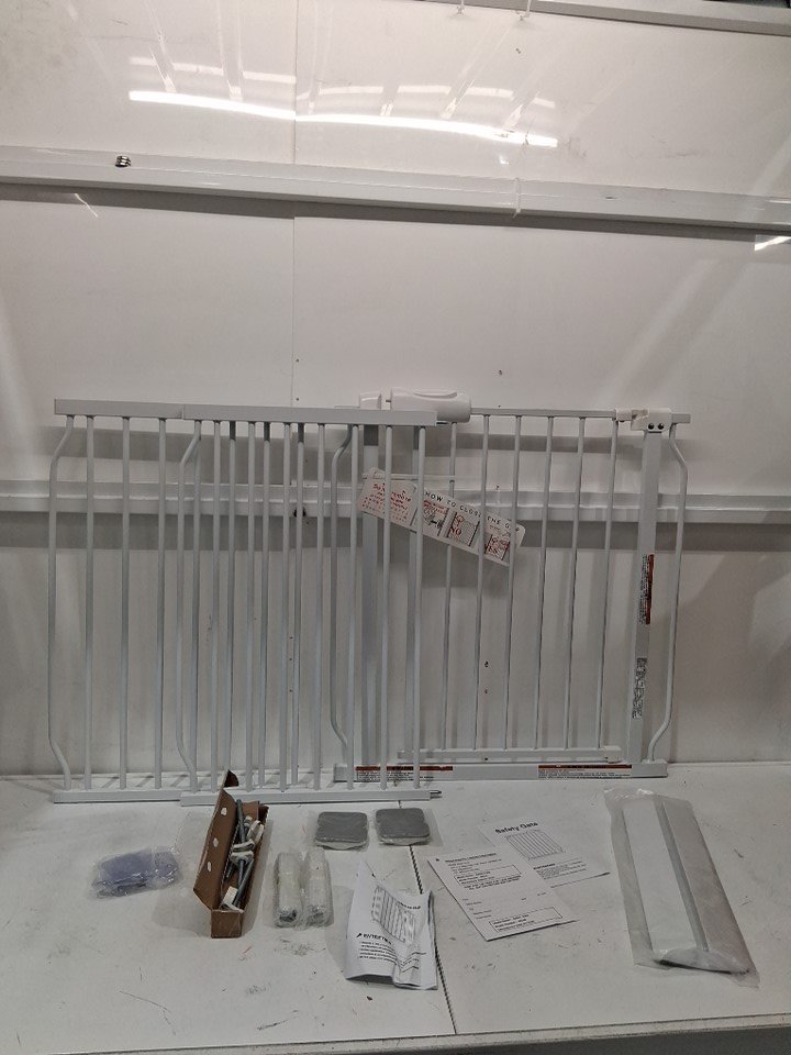 HIGH CHILD/PET SAFETY GATE WITH PRESSURE MOUNT - WALK THROUGH BABY GATE WITH AUTO CLOSE TENSION - FITS OPENINGS FROM 66.93" - 71.65" - WHITE (MODEL: W046)