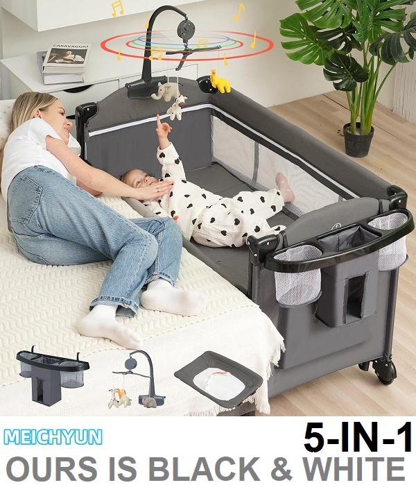 meichyun 5-in-1 baby bassinet - black/white (model: CA-PKZQ-GJC-BLACK)