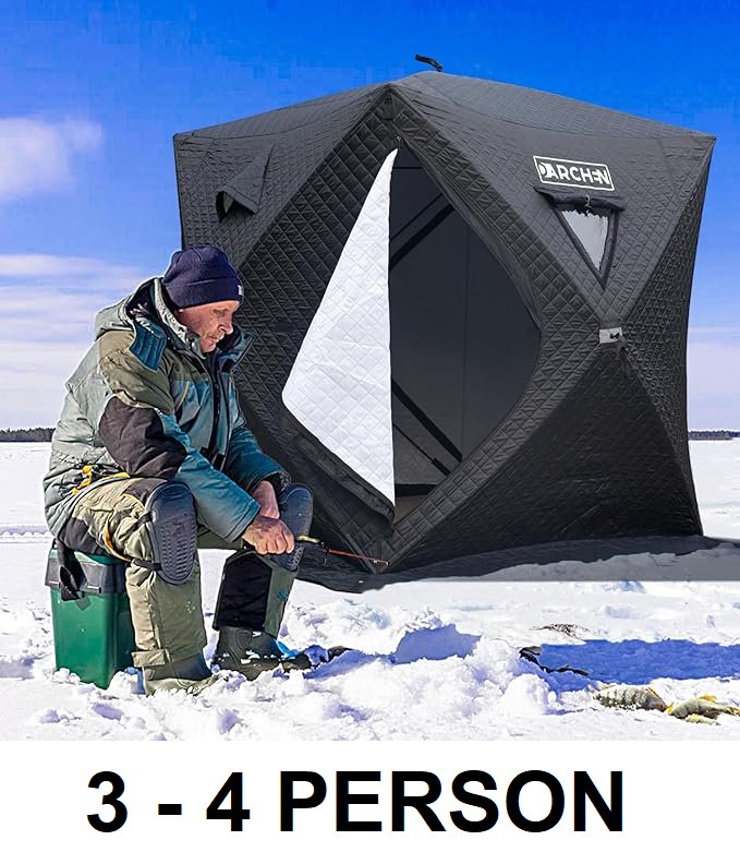 darchen insulated ice fishing shelter - fit up to 4 people - 6.5ft x 5.7ft x 5.7ft - black/silver