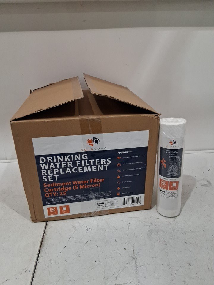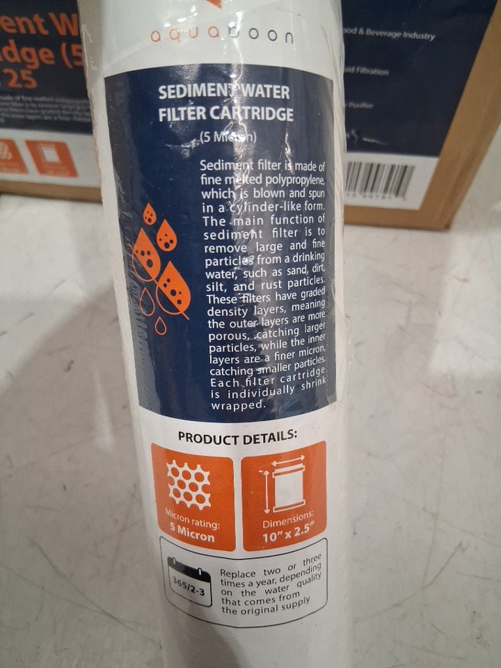 25PK Aquaboon 5 Micron Grooved Sediment Water Filter Replacement Cartridge - 10''x2.5'' - WHITE