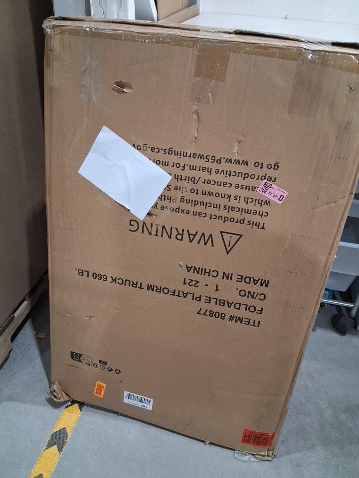 MAXWORKS FOLDABLE PLATFORM TRUCK PUSH DOLLY WITH SWIVEL WHEELS - LIFTS UP TO 660LB - 35.85" x 24" x 34.25" - BLACK/YELLOW (MODEL: 80877)