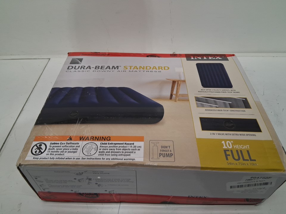 INTEX DURABEAM STANDARD DOWNY AIR MATTRESS WITH 300LB WEIGHT CAPACITY - 10" full - blue/GREY (MODEL: 64758E)