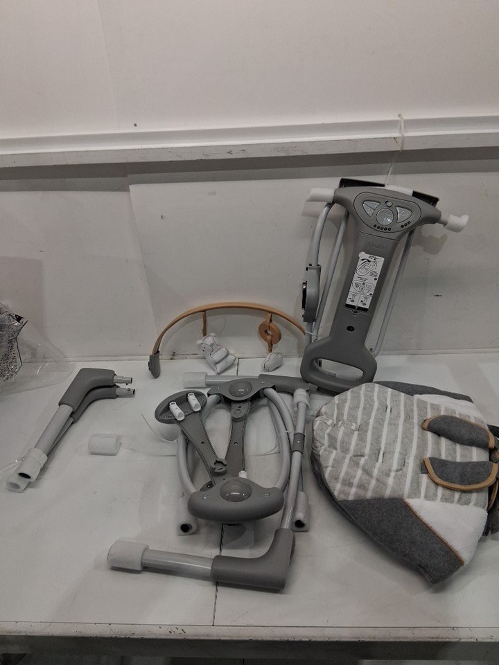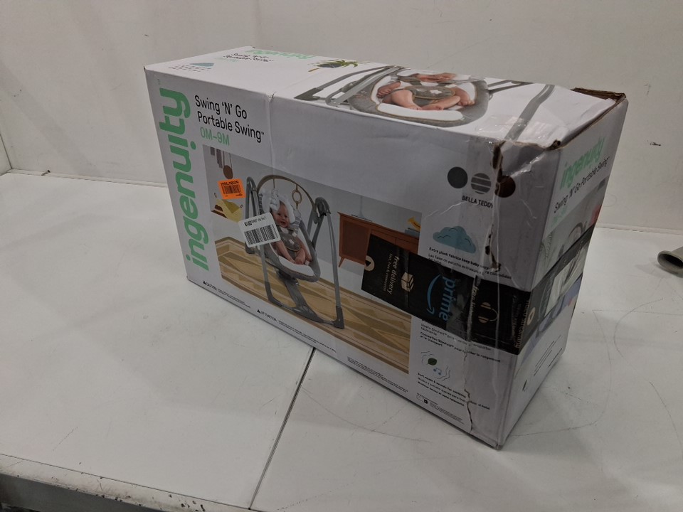 INGENUITY BOUTIQUE COLLECTION SWING 'N GO PORTABLE SWING WITH MULTIPLE SOUNDS/SWING SETTINGS - 20LBS CAPACITY - BELLA TEDDY IN GREY (MODEL: 11023-ES)