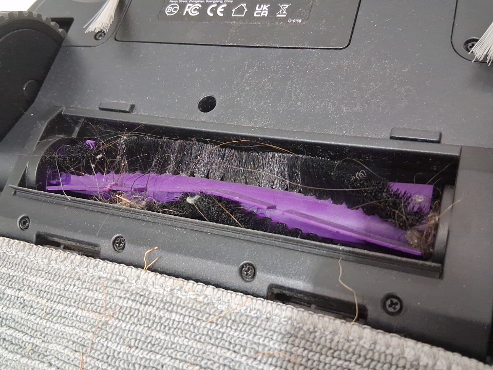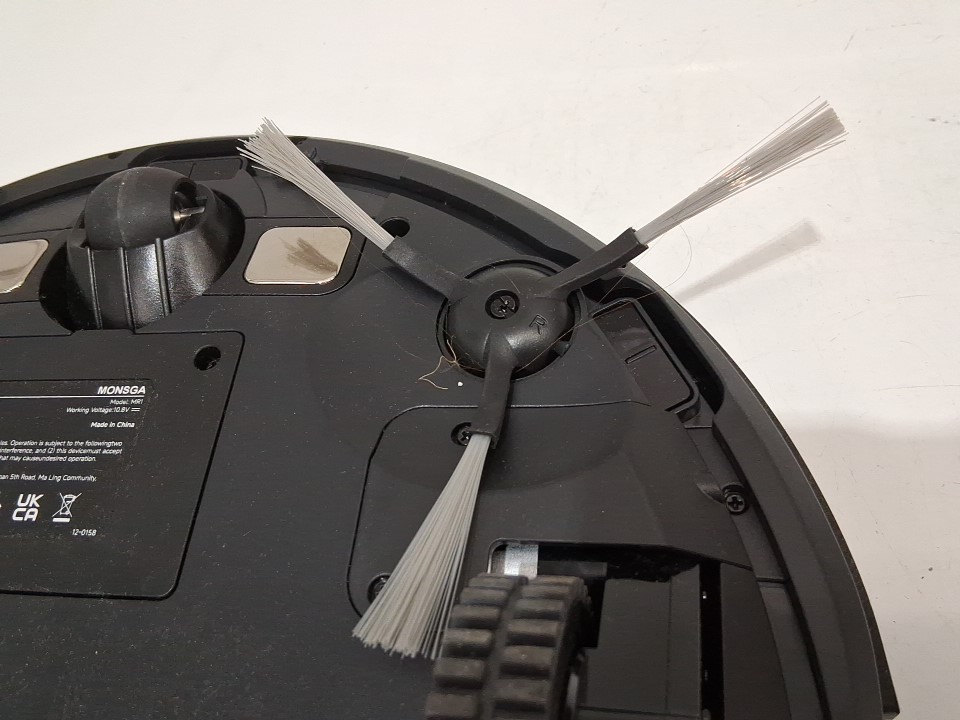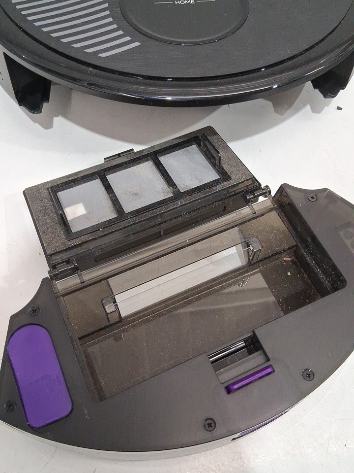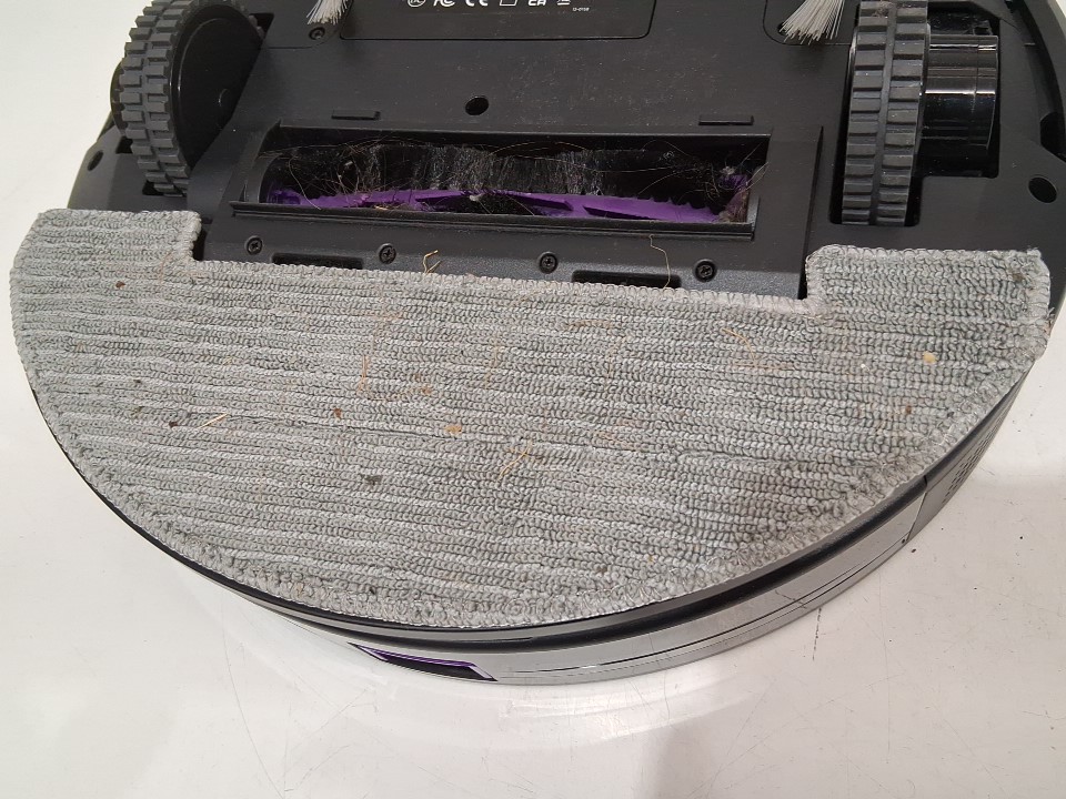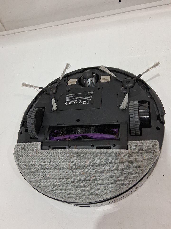 **Tested for power, movement, basic functions (spot clean/return home) using the remote control.** Item has minor dust/debris in the dustbin/filter area, light wear on the mop pads, main roller and side brushes from previous gentle use, see photos.
