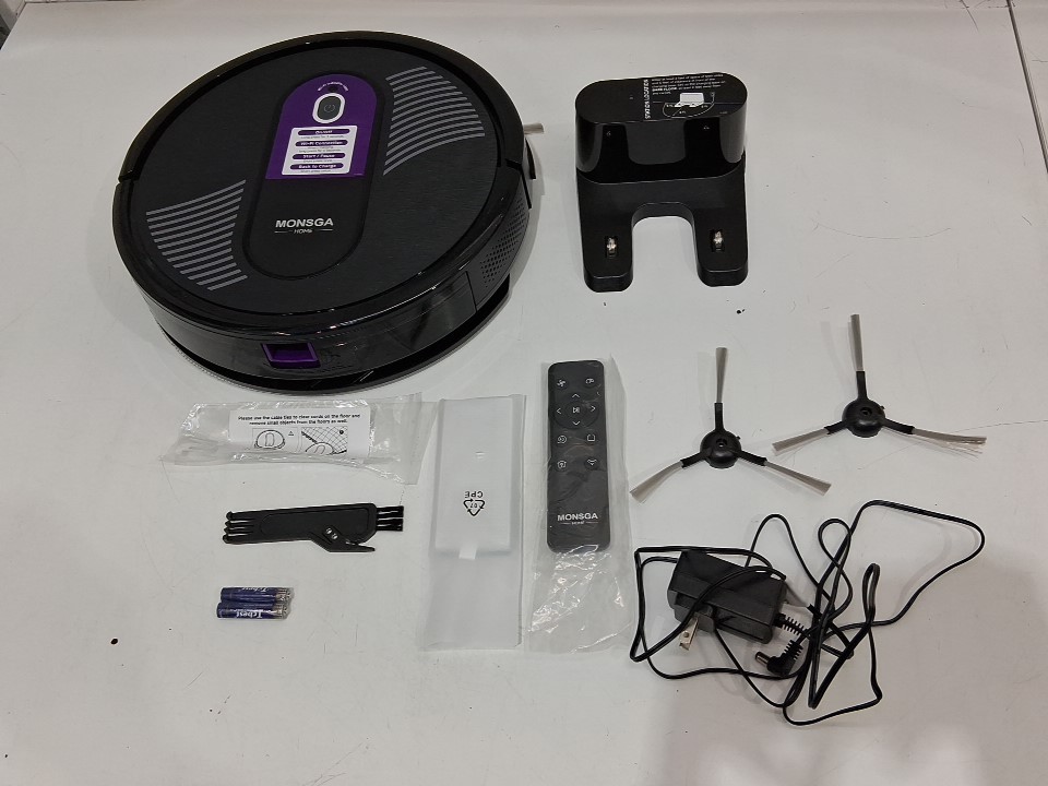 MONSGA Robot Vacuum with mop - 140Min Runtime, 3000pa, Pile Carpet, Pet Hair, Remote/App/Voice Control, Schedule Clean - black (model: mr1)