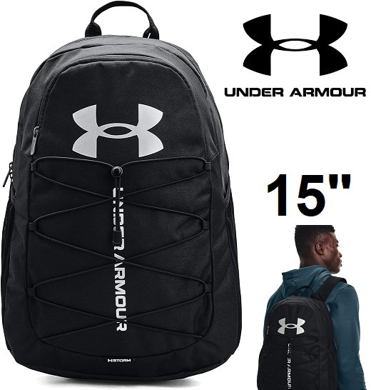 unisex adult Under Armour hustle 6.0 sport Backpack - 15" - black/white - (style: vrlb3xmn)