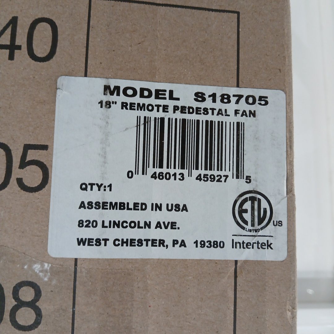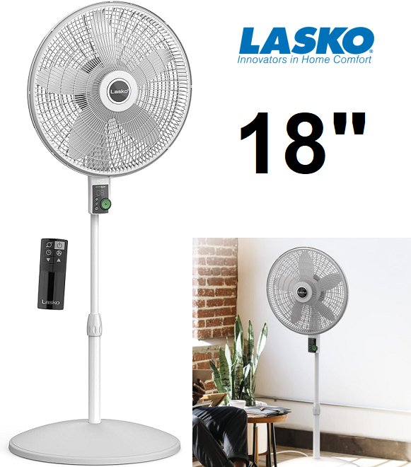 lasko ecoquiet 18" Oscillating Pedestal Fan with Whisper Quiet Motor - 12 Speeds, 8 Hour Timer, Adjustable Height and Remote Control - White (Model: s18705)