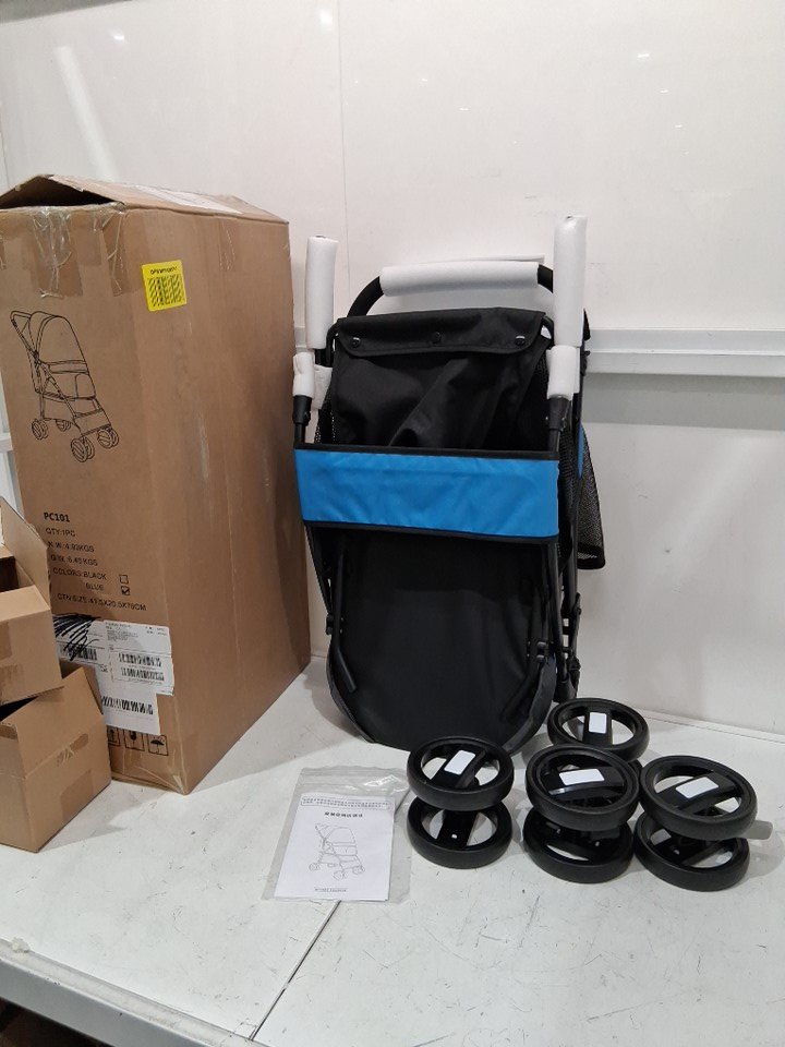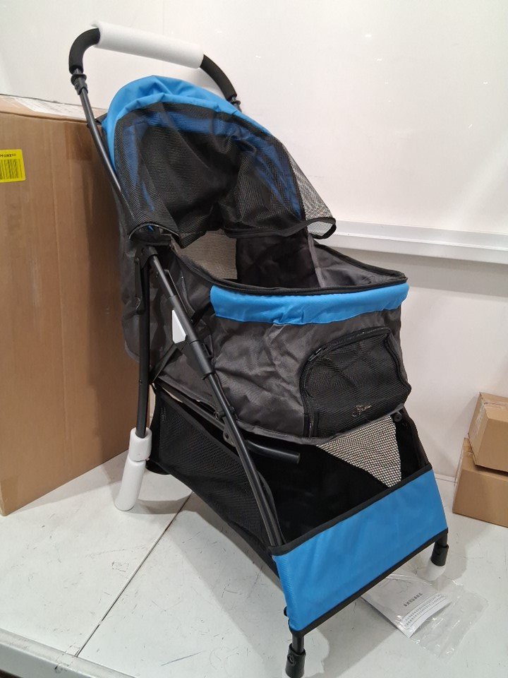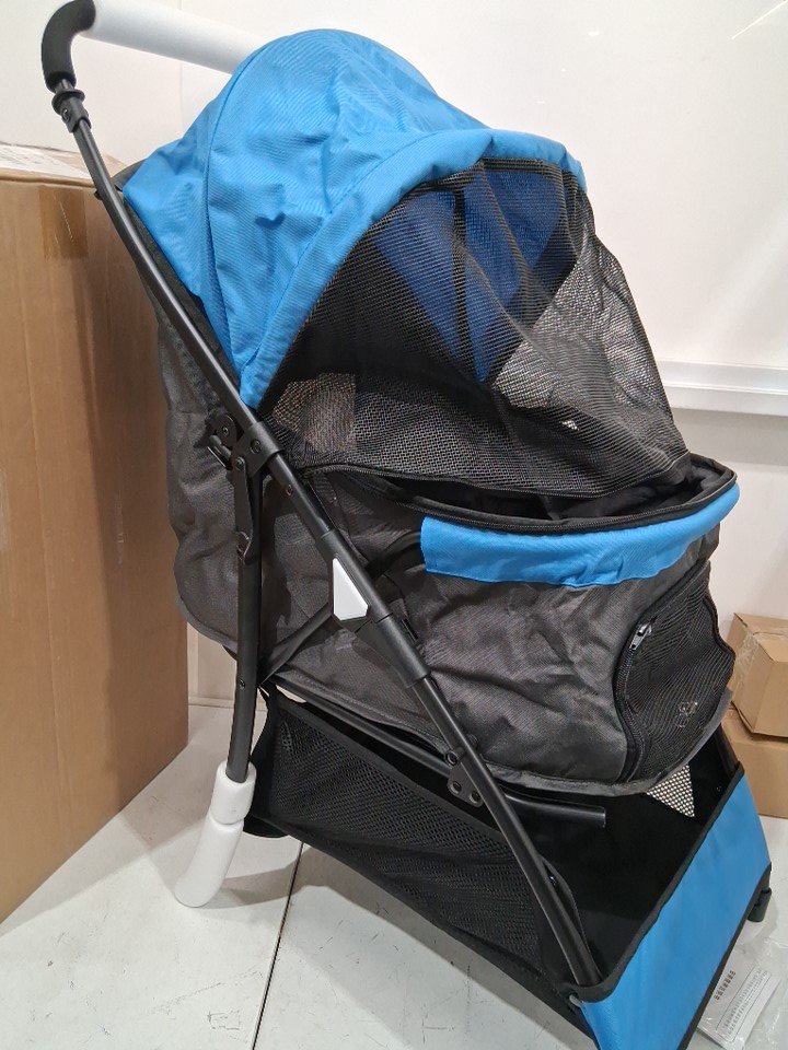 SUNNY SONNY FOLDABLE PET STROLLER WITH WEATHER COVER - UP TO 33LB - BLUE/BLACK (MODEL: PC101)