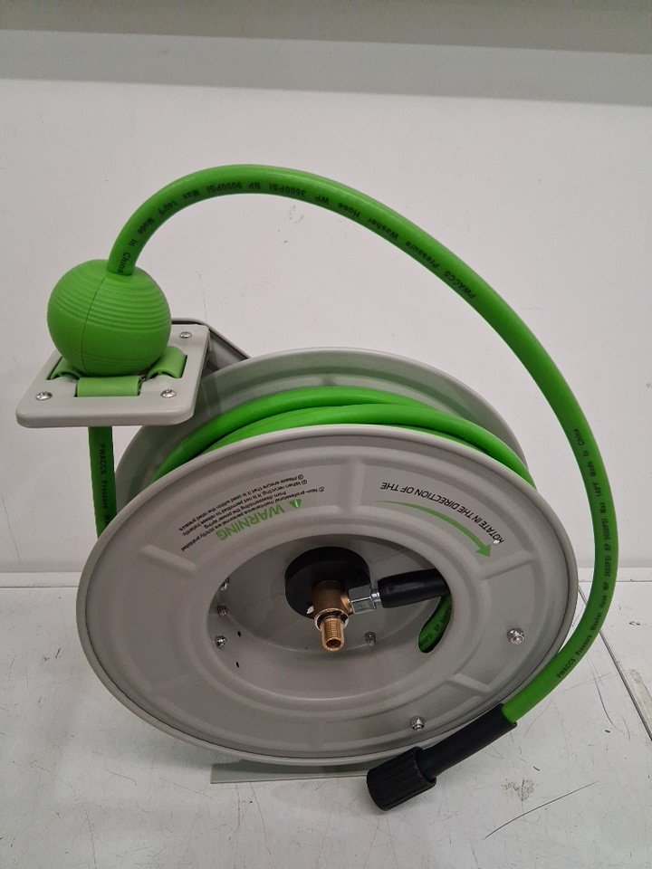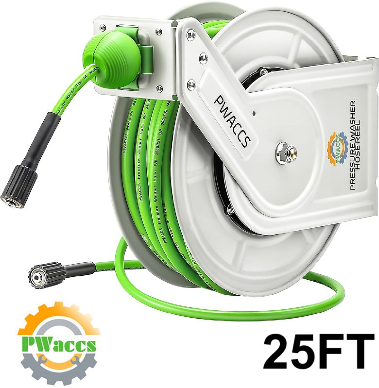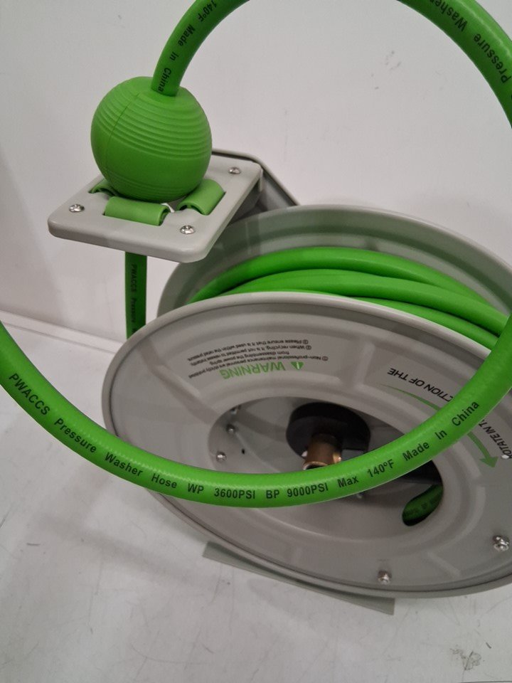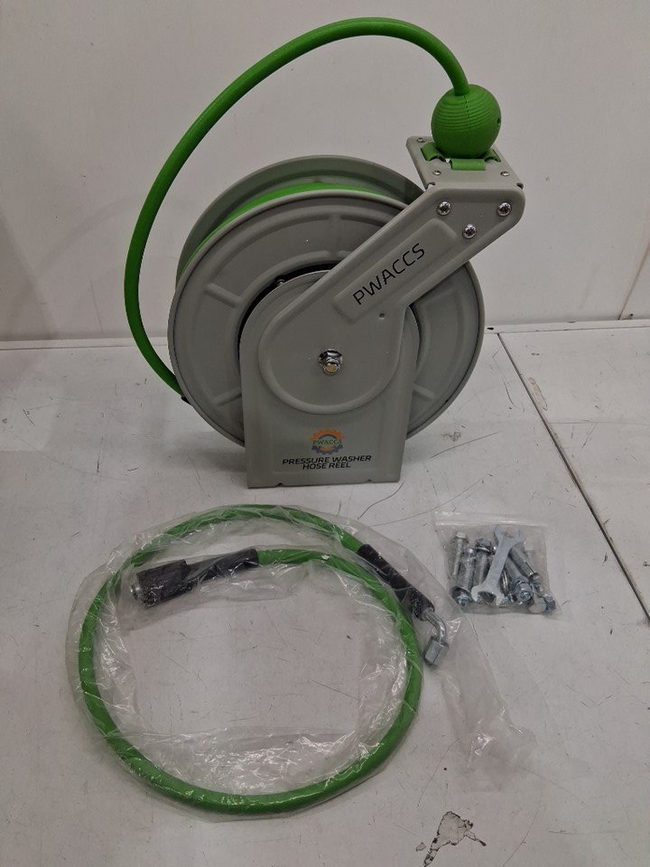 PWACCS Retractable Heavy Duty Wall/Floor Mounted Pressure Washer Hose Reel - 1/4" x 60 FT - 3600 PSI - Green/Grey (Model: PC51)