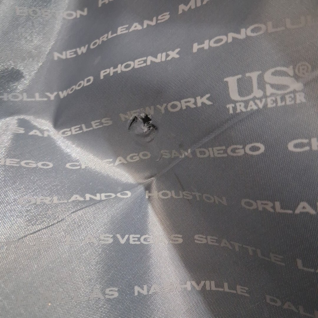There is a small hole in the lining. The outside is also covered in scuff marks. (see photos)