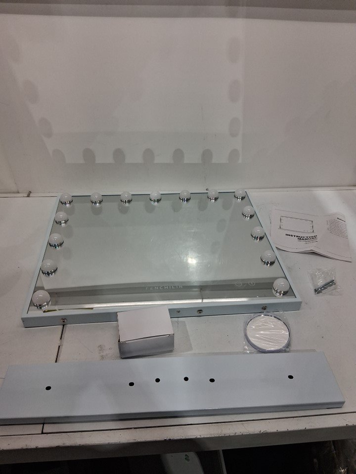 Fenchilin VANITY MIRROR WITH LIGHTS MAKEUP MIRROR WITH 15 LED BULBS - 23" X 18" - light blue (model:Dc117-24jm)