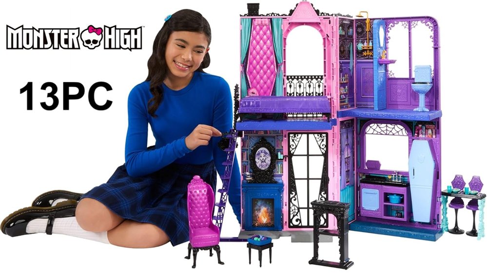 13+PC Monster High Boo-tique Hotel Doll House Including Furniture and Accessories - MULTICOLOR (MODEL:JBF16)