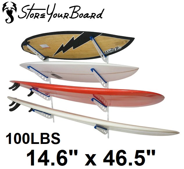 storeyourboard xsr outerbanks surfboard storage with 4 levels - 14.6" x 46.5" - white/blue (model: SYB-XSR-SURF-B)