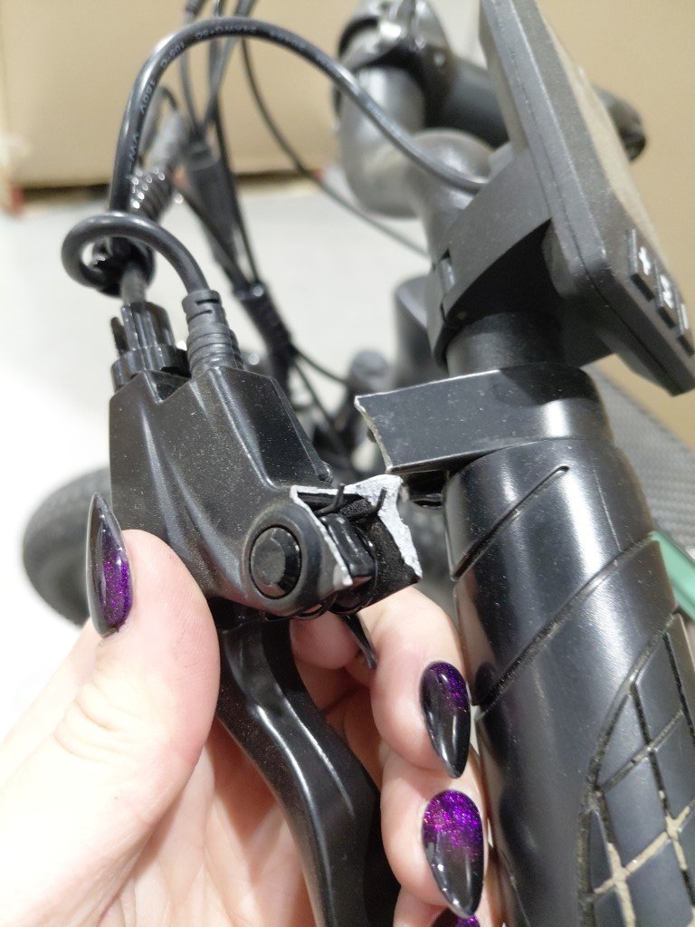 Brake lever is broken and will need to be replaced. No charger provided cannot test item as it is dead. Charger can be replaced. No key for battery lock (see photos)