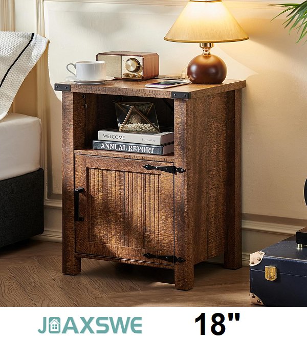 joaxse farmhouse Night Stand/end table with storage shelf and Charging Station and USB Port - 18" - brown - (model: jo-bfns-brown)