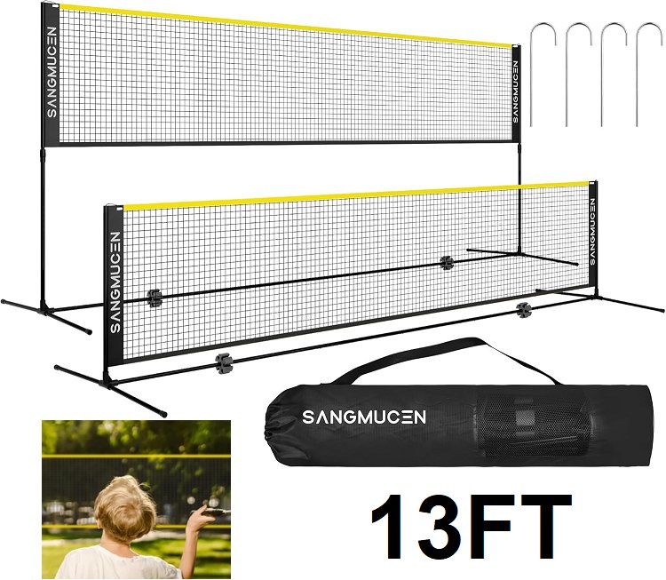SANGMUCEN Portable Badminton Net Set, for Volleyball, Pickleball, Soccer Tennis - 13FT - BLACK/YELLOW (MODEL: tbn004y)