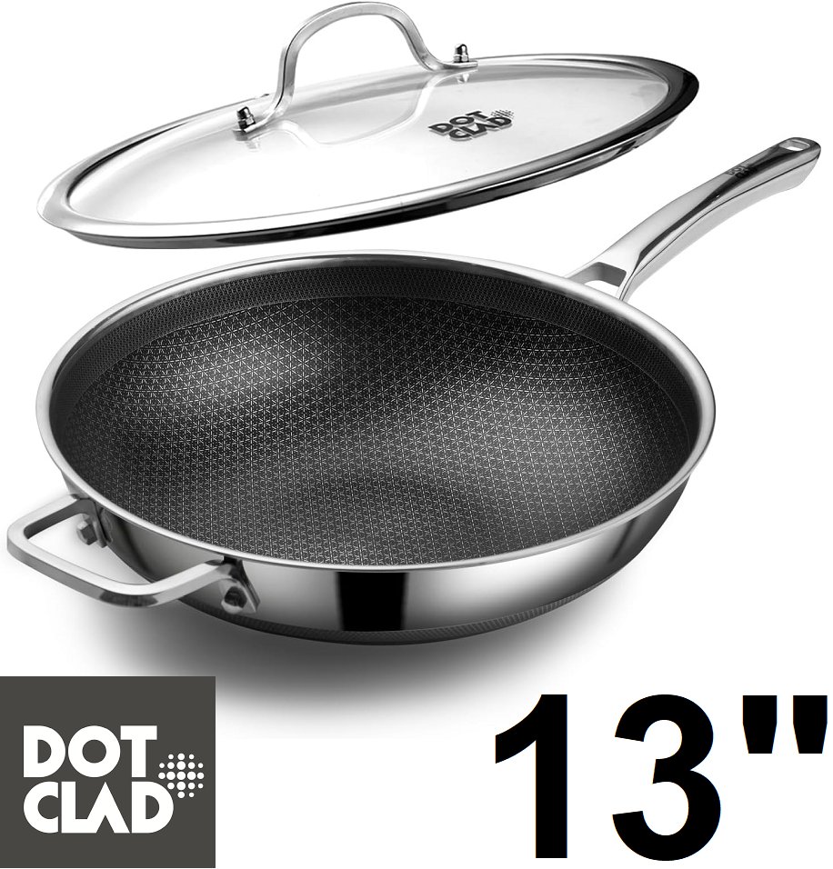 dotclad non-stick dishwasher oven safe wok pan with glass lid - 13" - black