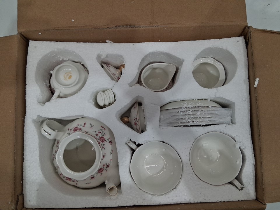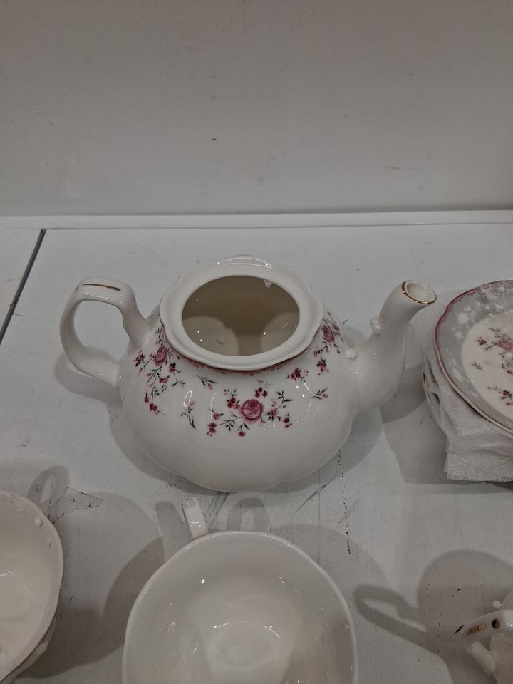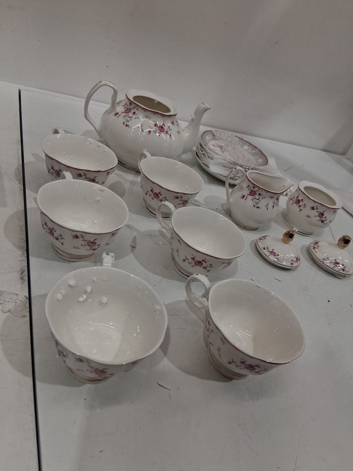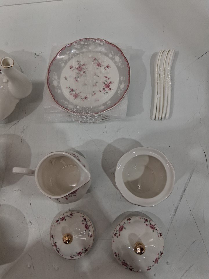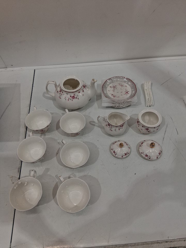 23PC fanquare Vintage Porcelain Tea party Cup and Saucer Set for 6 - PINK ROSE/GOLD