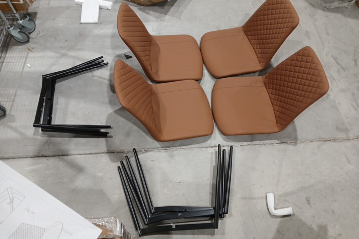Chairs do not appear used or assembled but some assembly marks are faintly visible on a few pieces of metal. One chair has some light scuffing, presumably from loose pieces in box during shipping