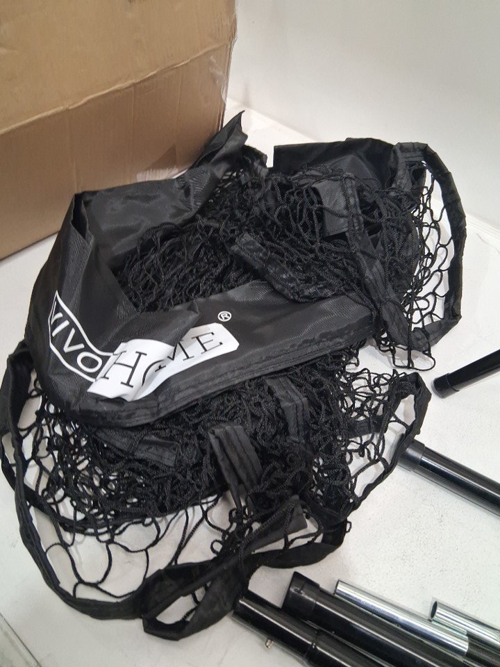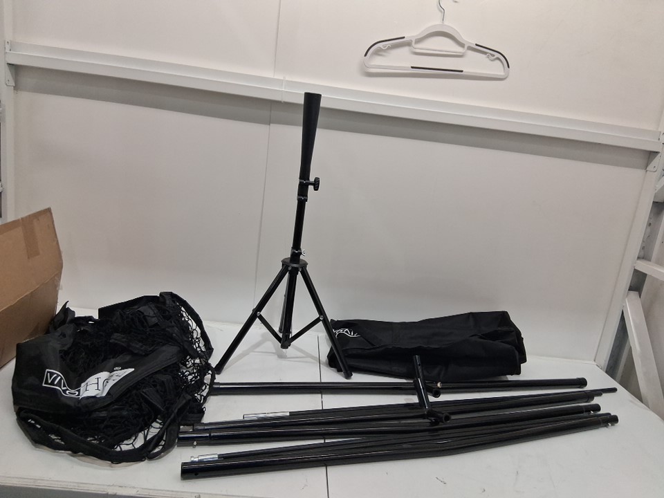 Item has some grass residue, marks and scuffing from previous use. Item is missing the ground stakes.