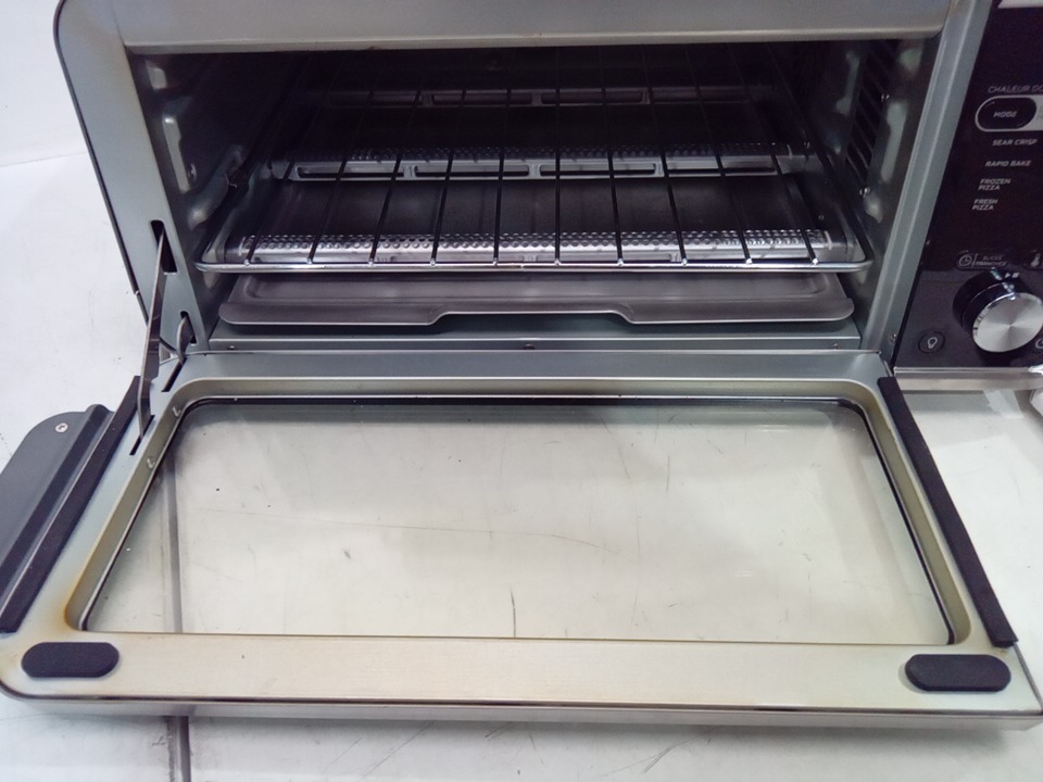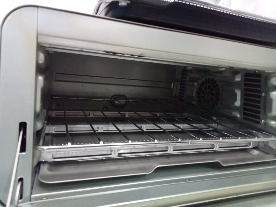 there is major food residue and inside and out of the oven indicating previous use, please see photos. tested for power.