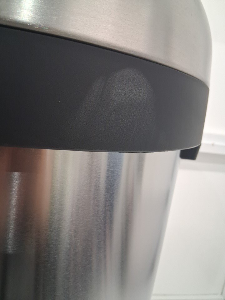 Lid has a discoloration spot, and frame has finger smudges