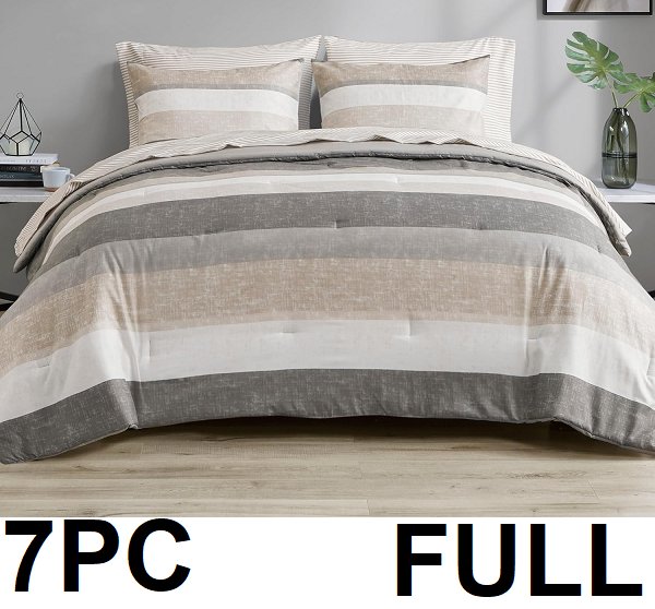 7PCMADISON PARK ESSENTIALS ALL SEASONS BED IN A BAG - FULL - TAUPE/GREY