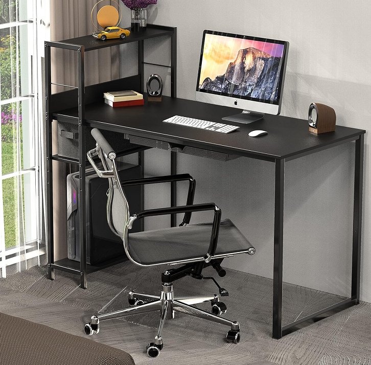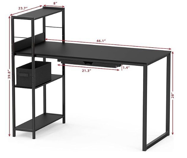SIMPLE HOUSEWARES Mission Desk with Side Shelf, 46" x 28" x 24" - BLACK - (MODEL: OD-12F-K#HS02)