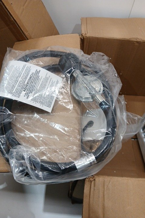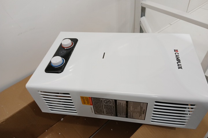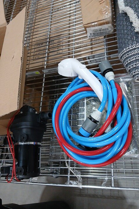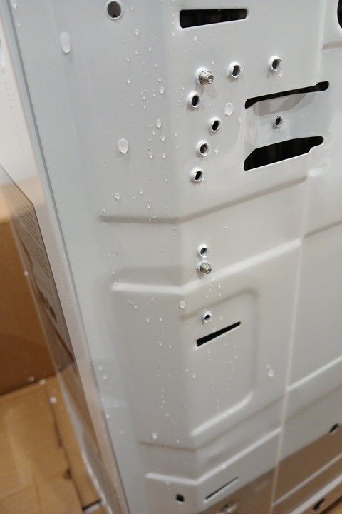 Water on the main unit and dried water marks on shower head