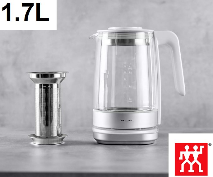 zwilling enfinigy programable glass electric kettle - 1.7l - silver (model: 53103-200)